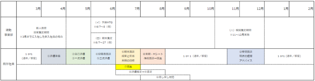(イ)4~7月に中途入社したものは、前期評価はなし。来期分を作成