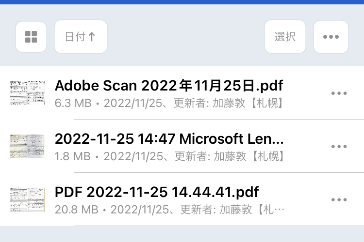 上からAdobeScan・MicrosoftLens・BOX直接。