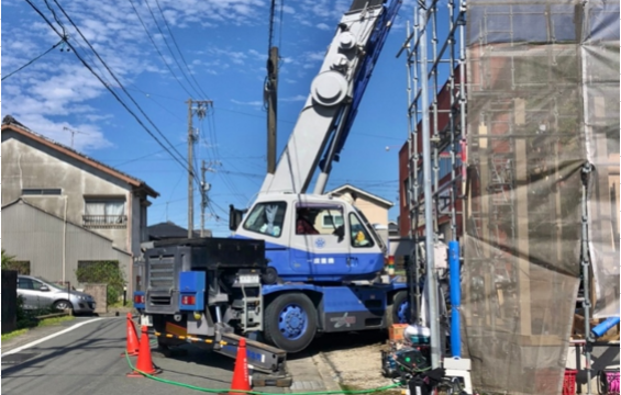 敷鉄板による歩道養生 仮設足場の設置 仮囲い あさがお(10m以上の建築とかで上のほうに斜めにでてるやつ) 掘削