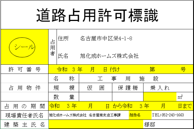 道路使用に合わせて。 旭化成は標識作成(ラミネート)あり。