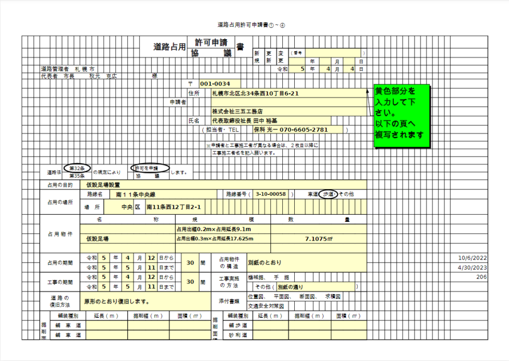 道路使用も一緒に提出か否か (市町村によって異なる、道路管理課→警察署などの流れも違う)